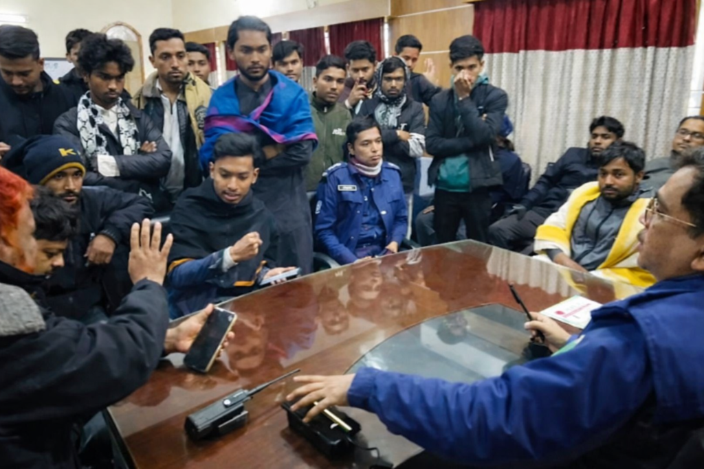 ঘটনার পর পরিস্থিতি নিয়ন্ত্রণে শুক্রবার দুপুর আড়াইটার দিকে জেলা সদর সার্কেলের অতিরিক্ত পুলিশ সুপার শহীদুল ইসলাম থানায় যান। পরে বিকেল ৩টার দিকে আটক এনামুল হাসান নয়নকে মুক্তি দেওয়া হয়।