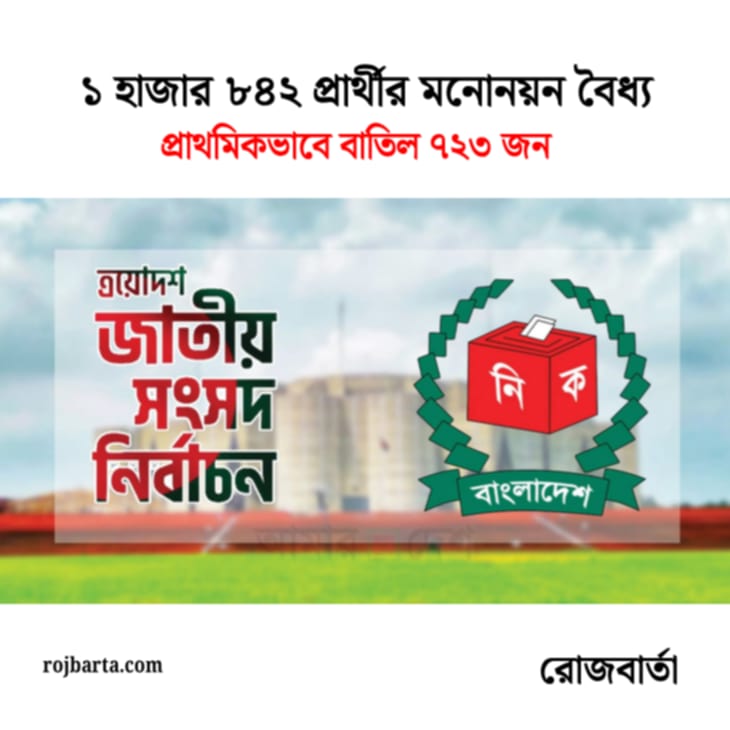 নিউজ ডেস্কঃ আসন্ন ত্রয়োদশ জাতীয় সংসদ নির্বাচনে ৩০০টি সংসদীয় আসনে ১ হাজার ৮৪২টি মনোনয়নপত্র বৈধ এবং ৭২৩টি মনোনয়নপত্র বাতিল ঘোষণা করা হয়েছে। নির্বাচন কমিশনের (ইসি) বরাতে তথ্য মন্ত্রণালয় এ তথ্য
