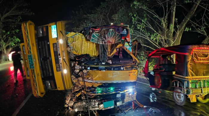 রোজবার্তাঃ গোপালগঞ্জের মুকসুদপুরে ঢাকা-খুলনা মহাসড়কের চন্ডীবরদী ব্রিজ সংলগ্ন এলাকায় কেমিক্যালবাহী একটি ট্রাকের চাকা ফেটে যাওয়ার ফলে দুই ট্রাকের মধ্যে মুখোমুখি সংঘর্ষের ঘটনা ঘটেছে। এই দুর্ঘটনায় কোনো প্রাণহানি না ঘটলেও উভয়