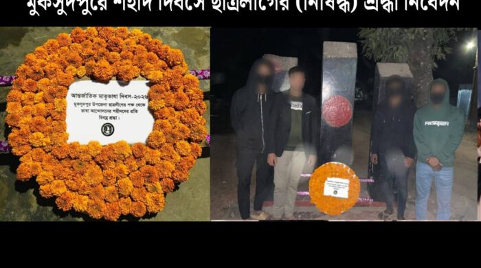 রোজবার্তা: অন্তর্বর্তীকালীন সরকার কর্তৃক নিষিদ্ধ ঘোষিত ছাত্র সংগঠন বাংলাদেশ ছাত্রলীগের মুকসুদপুর উপজেলা শাখার উদ্যোগে মধ্যরাতে আন্তর্জাতিক মাতৃভাষা ও শহীদ দিবস উপলক্ষে ভাষা শহীদদের প্রতি শ্রদ্ধা নিবেদন করেছেন সংগঠনের কয়েকজন নেতাকর্মী।